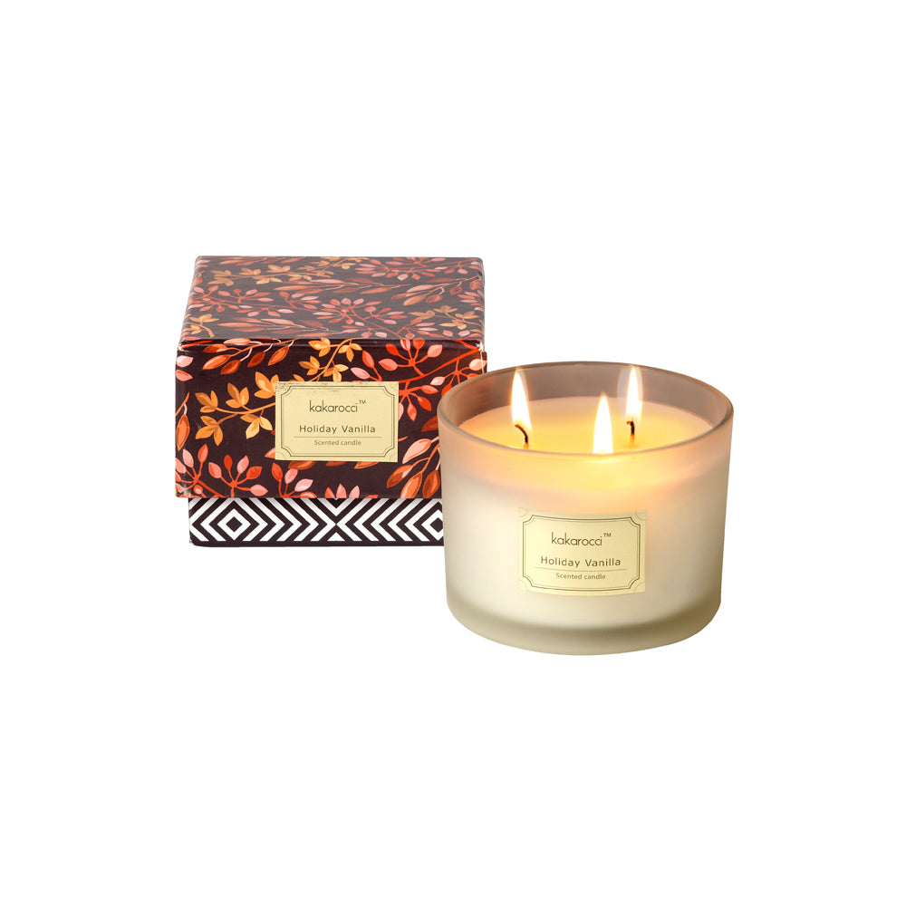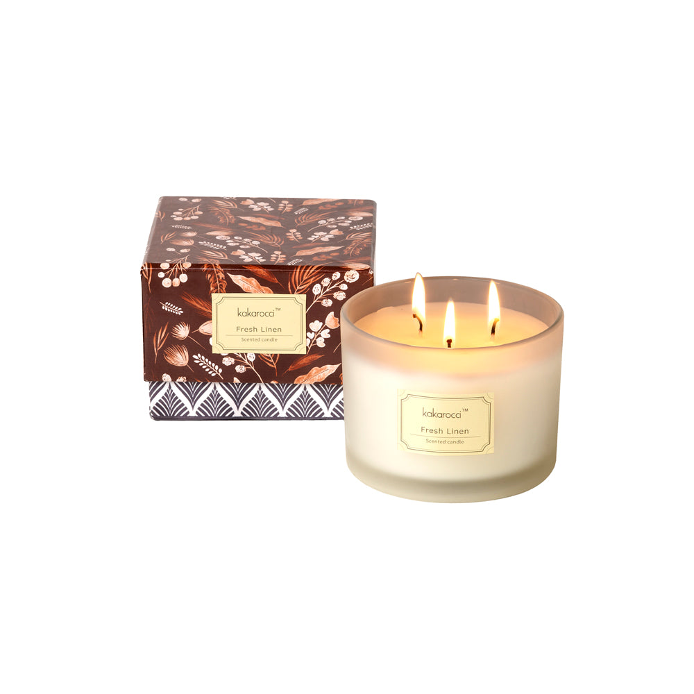 Assortment of aromatic candles with fresh linen and vanilla scents. Fresh linen reminds of the smell of clean clothes with a slight citrus touch, while the soft vanilla aroma has soothing properties that contribute to the moment of relaxation. With them we can turn any environment into a relaxing place that improves the time to have tea
