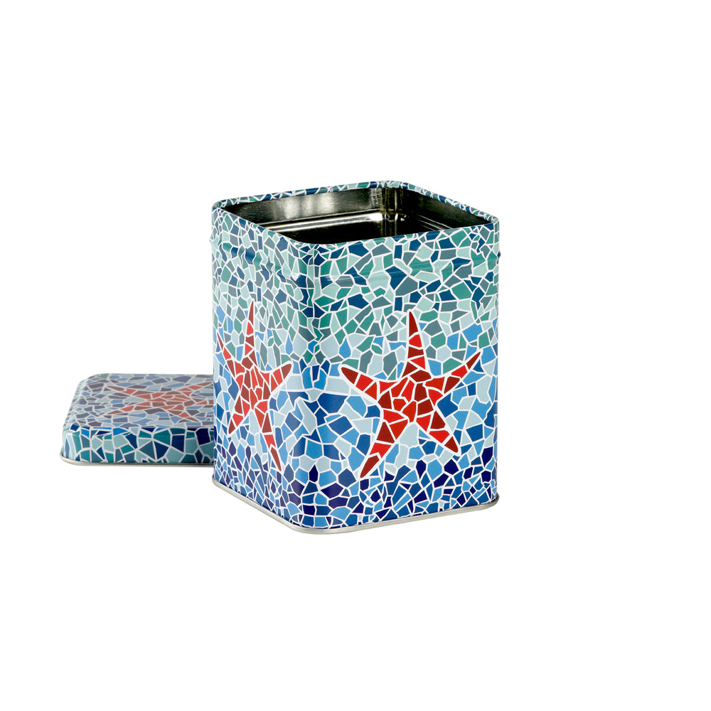 Boîte à thé en laiton de 250 g au design exclusif Tea Shop avec un imprimé inspiré par l'architecte moderniste catalan Antoni Gaudí. Ce type de motifs se retrouve dans nombre de ses œuvres, comme au Parc Güell à Barcelone. Combinaison idéale avec le mug Harmony Étoile et la boîte Étoile 100 g.