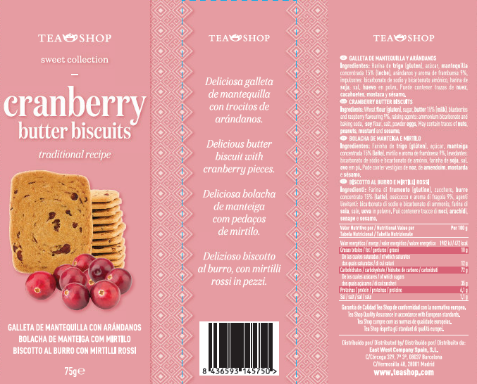 Biscotti prodotti seguendo la tradizionale ricetta olandese al burro e mirtillo rosso.