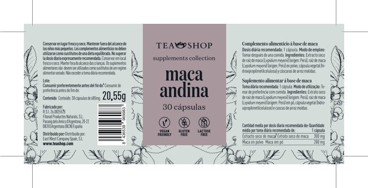 Extracto de Maca Andina, conocida también como el "ginseng peruano". Esta famosa raíz originaria de Perú destaca entre sus beneficios por ser una fuente de energía, contribuendo al mantenimiento del bienestar físico y mental.