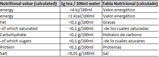 Tabla nutricional