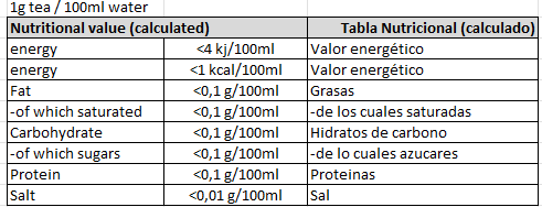 Nutritional Table